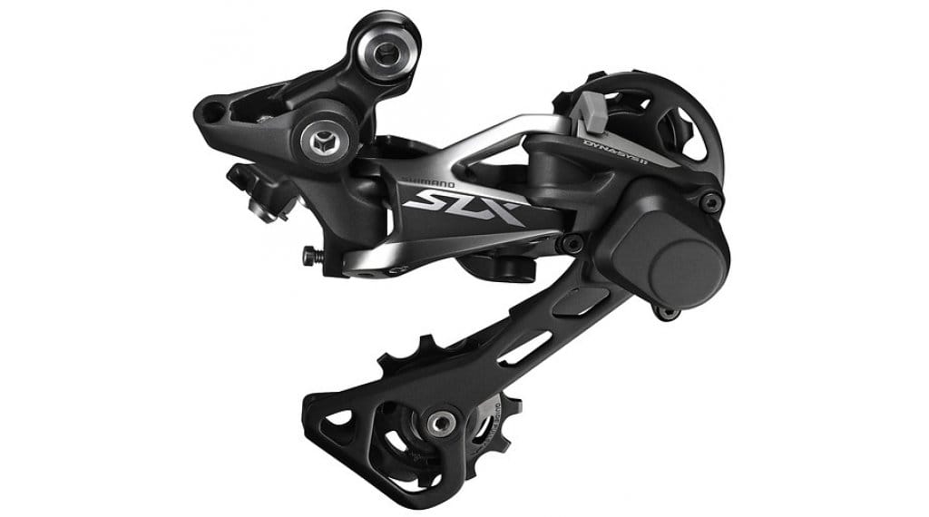 Im Zusammenspiel mit den Schalthebeln spielen auch die neuen SLX-Schaltwerke ihre ganze Stärke aus. Dank der SHADOW+ Technologie liefern sie auch in anspruchsvollstem Gelände zuverlässige Schaltpräzision, indem durch den integrierten Reibungsdämpfer die Kette stabilisiert und am Schlagen gehindert wird. Die GS-Version mit mittellangem Käfig (RD-M7000-11-GS) für 1×11- und 2×11-fach-Systeme sind für eine Gesamtkapazität bis 41 Zähne ausgelegt.