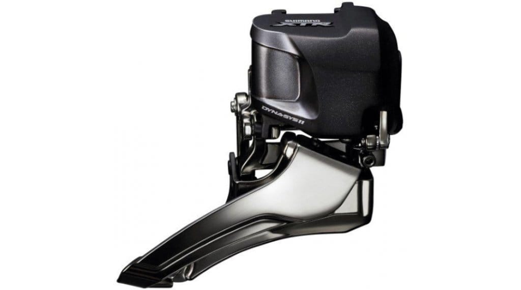 Shimanos XTR Umwerfer für dein Di2 System. Mit einer Bandbreite von 2×11 Gängen mit bis zu 34-38 Zähnen.