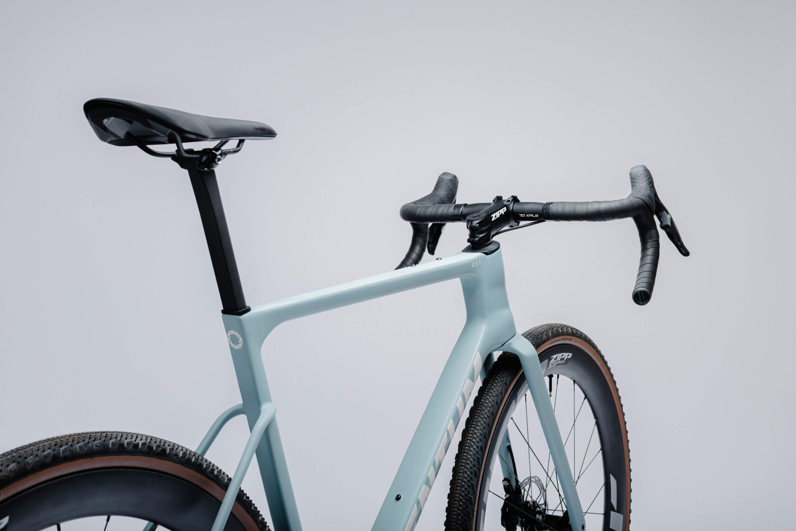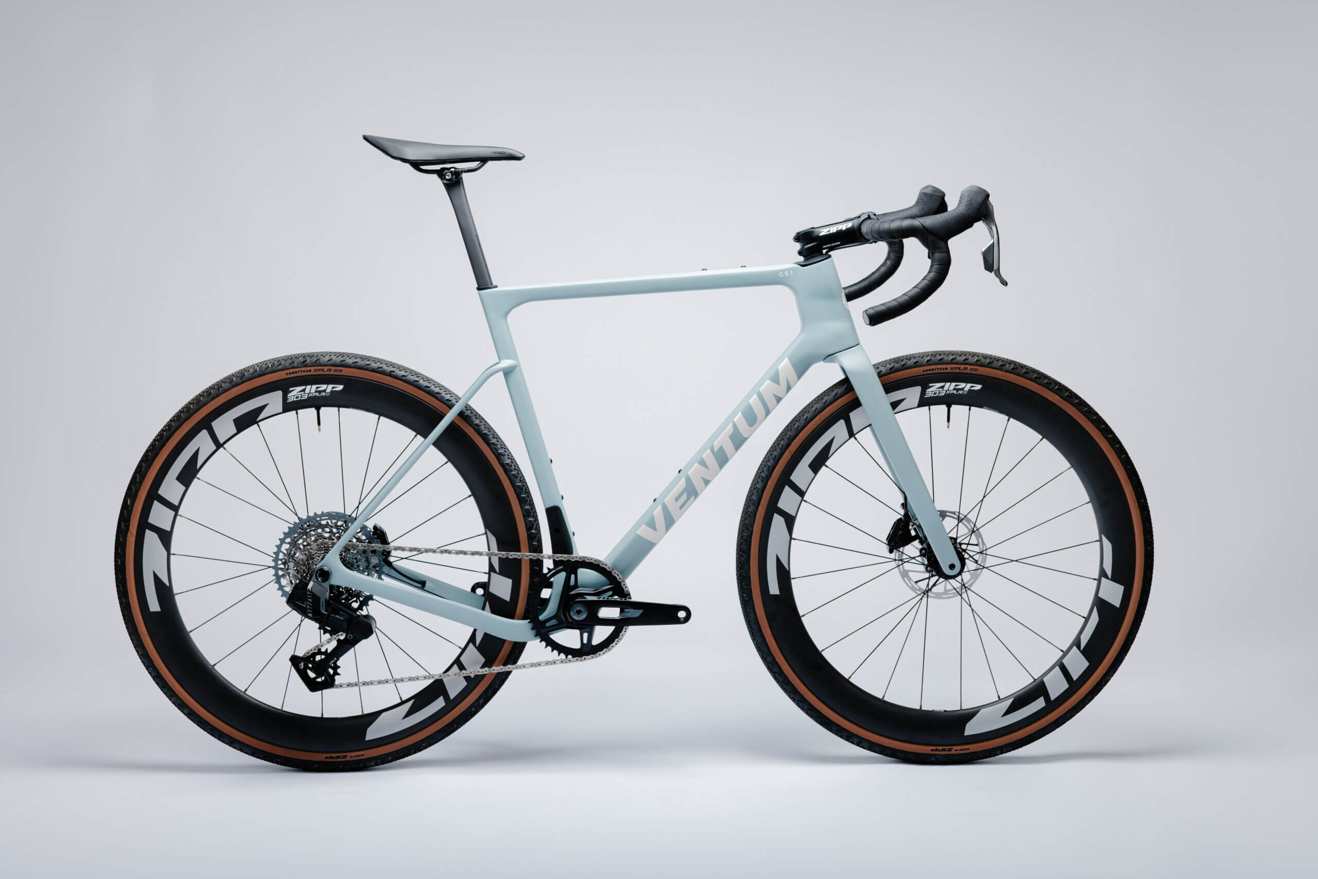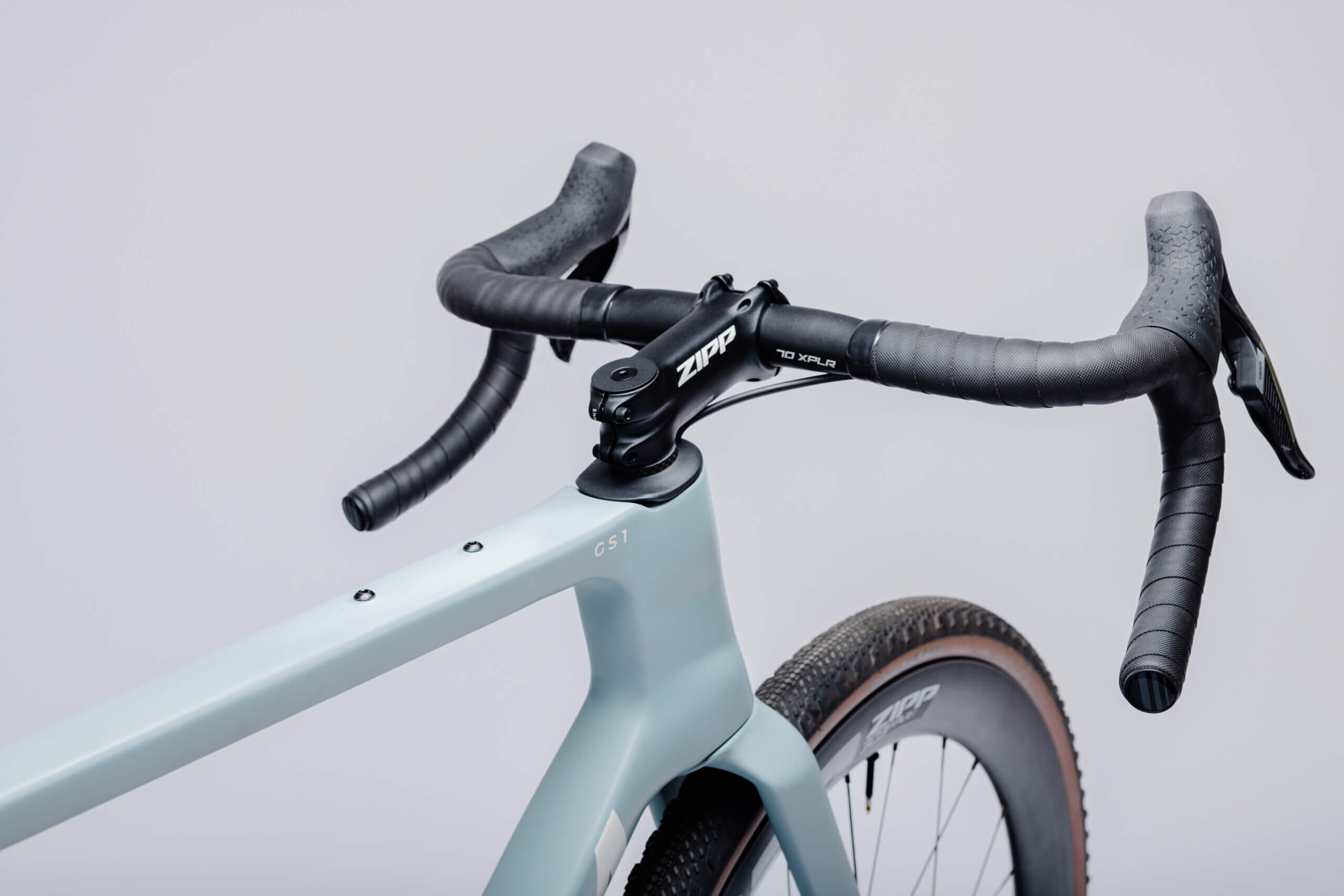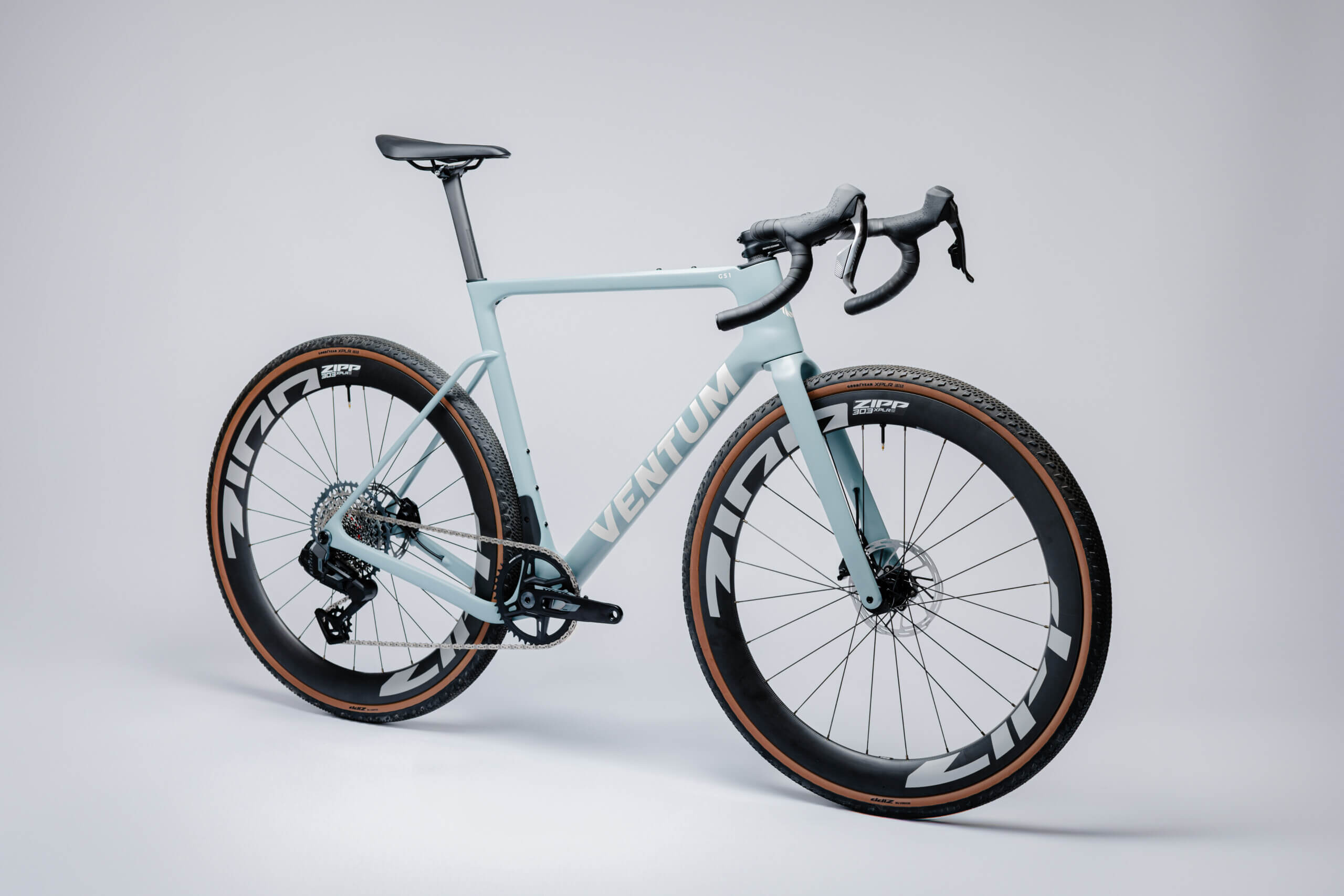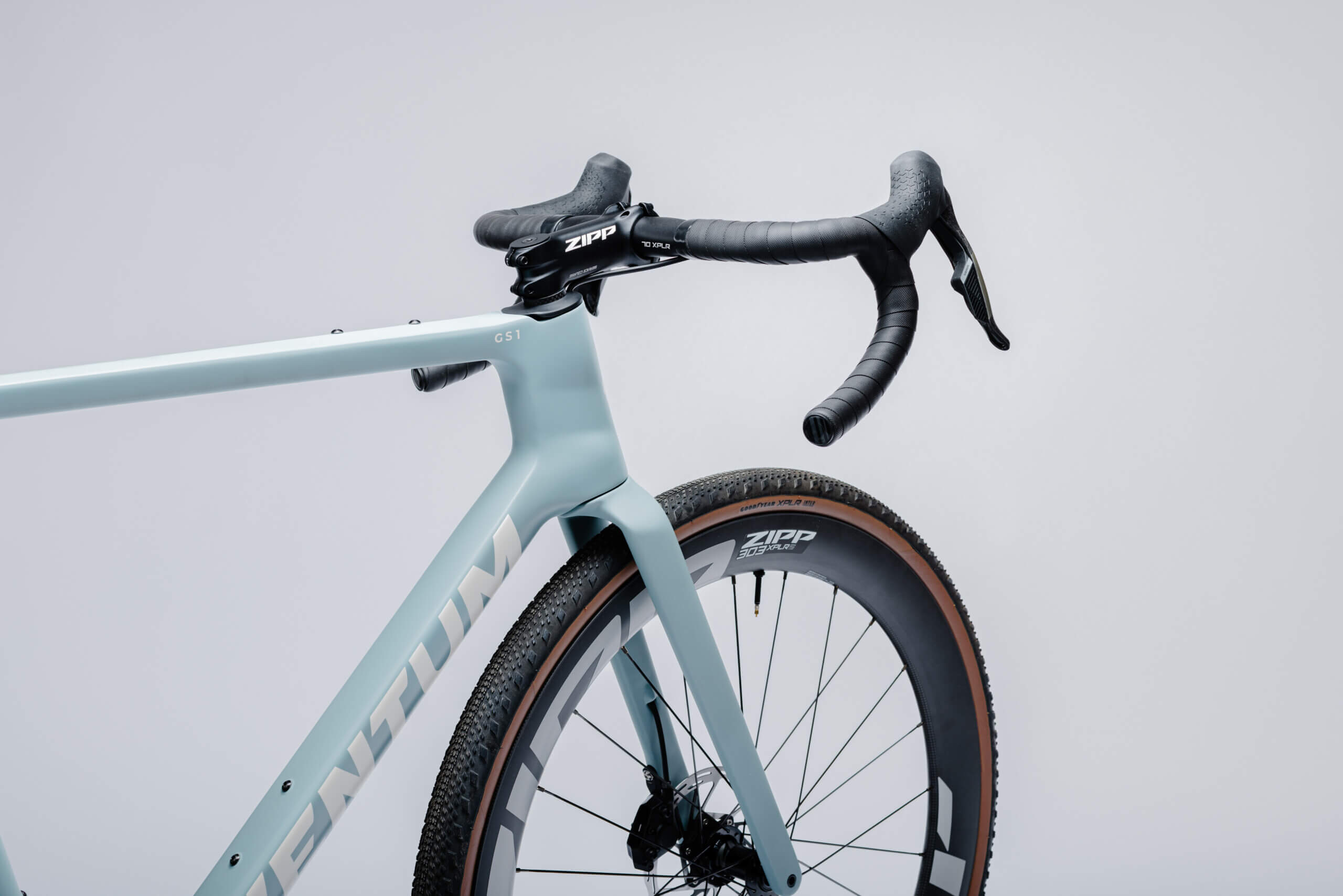 Diese Version des GS1 Gravelbikes ist mit der High-End-Schaltung SRAM Rival XPLR E1 13-Gang und ZIPP 303 XPLR S Laufrädern ausgestattet.