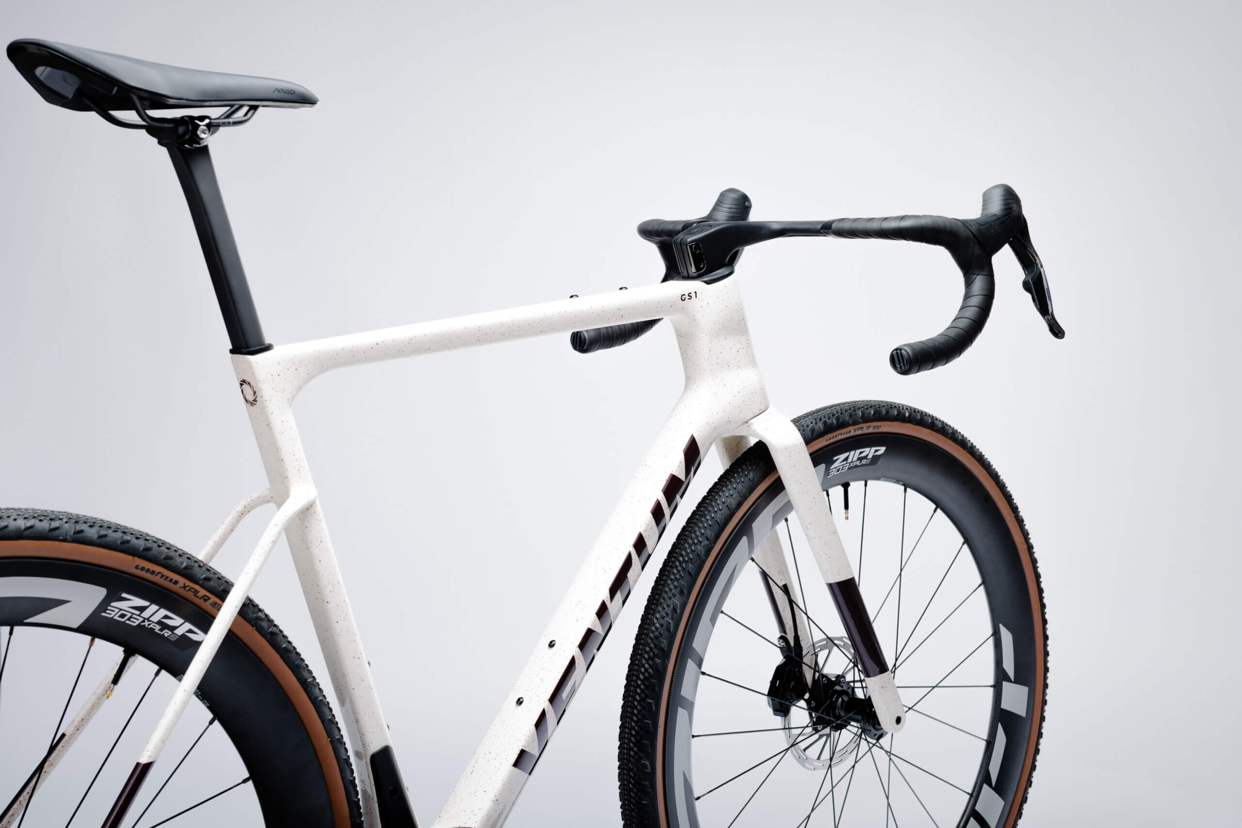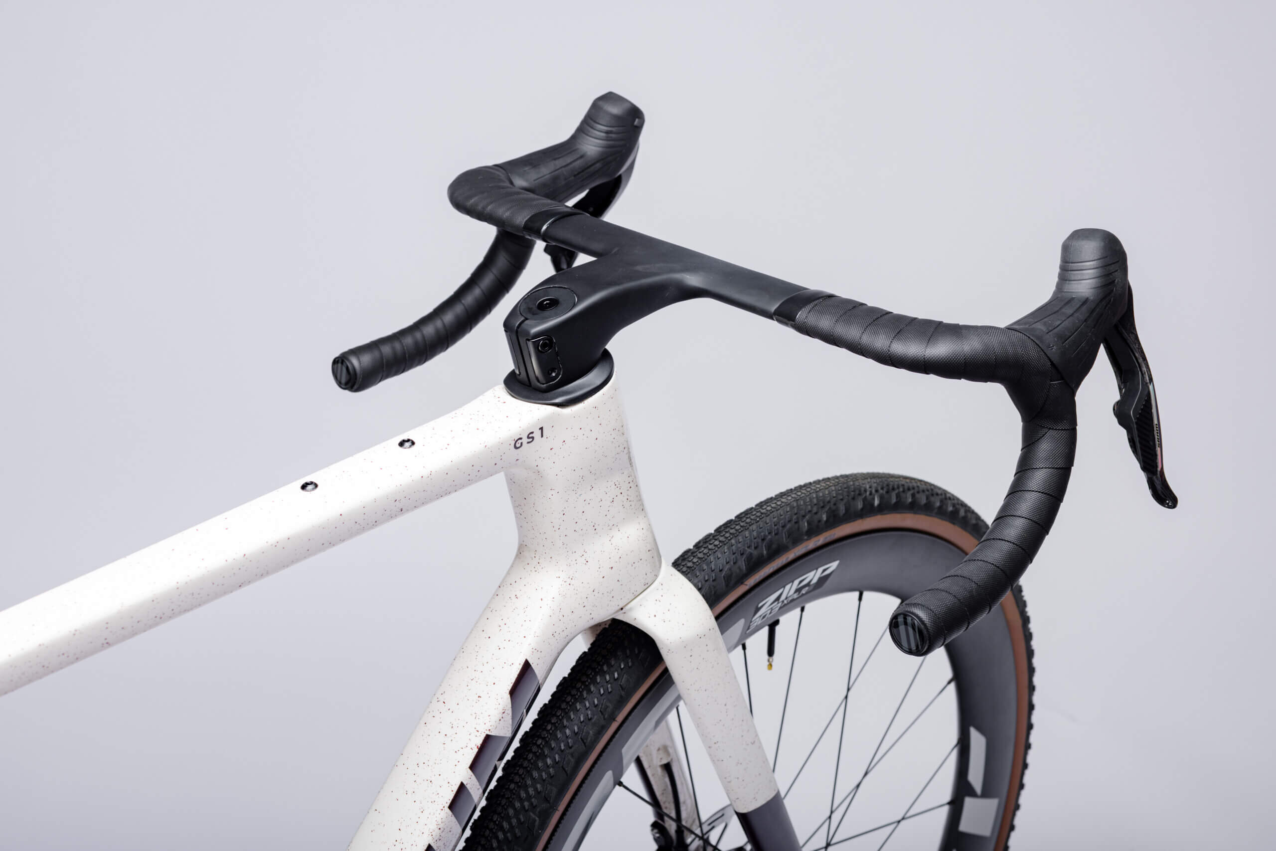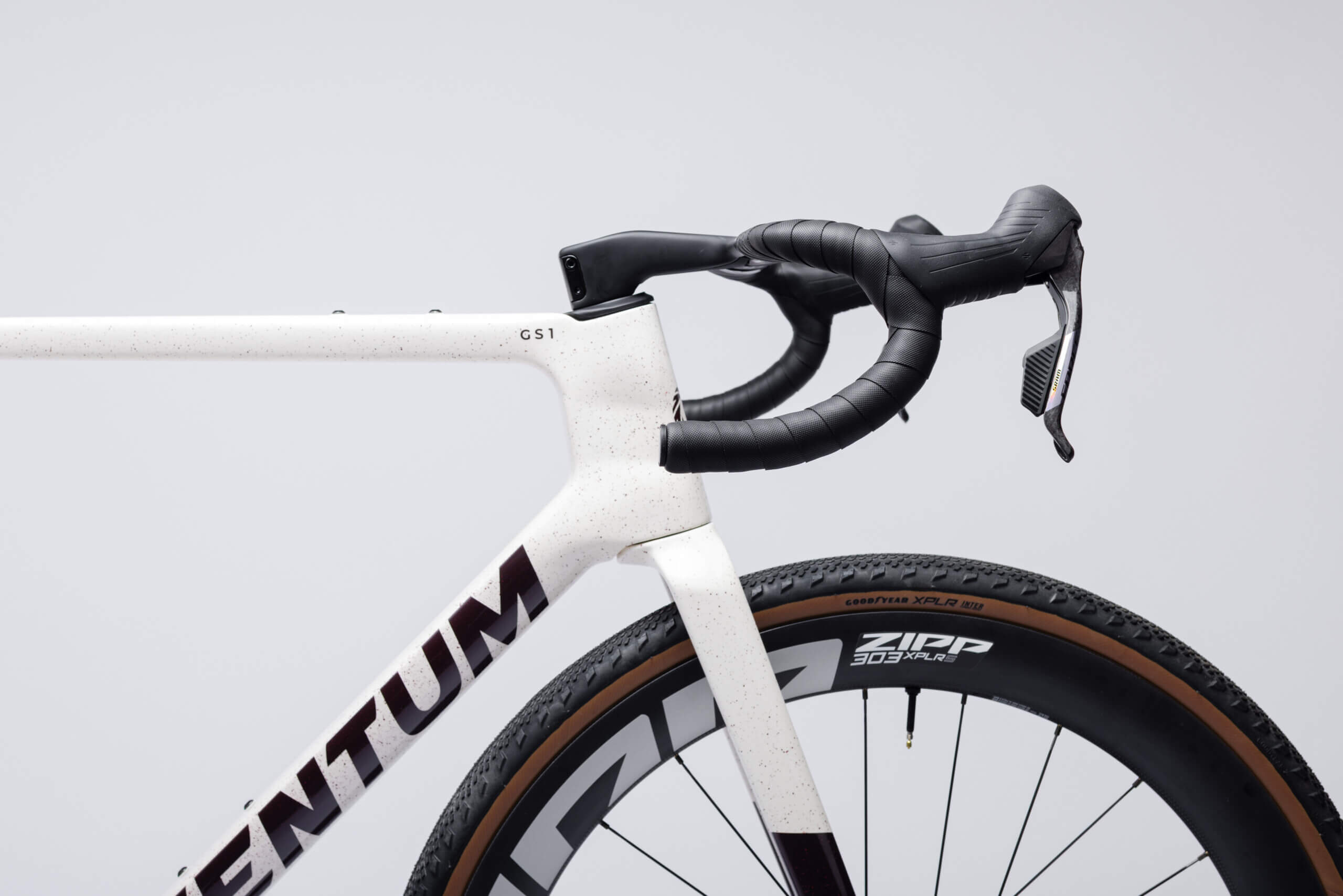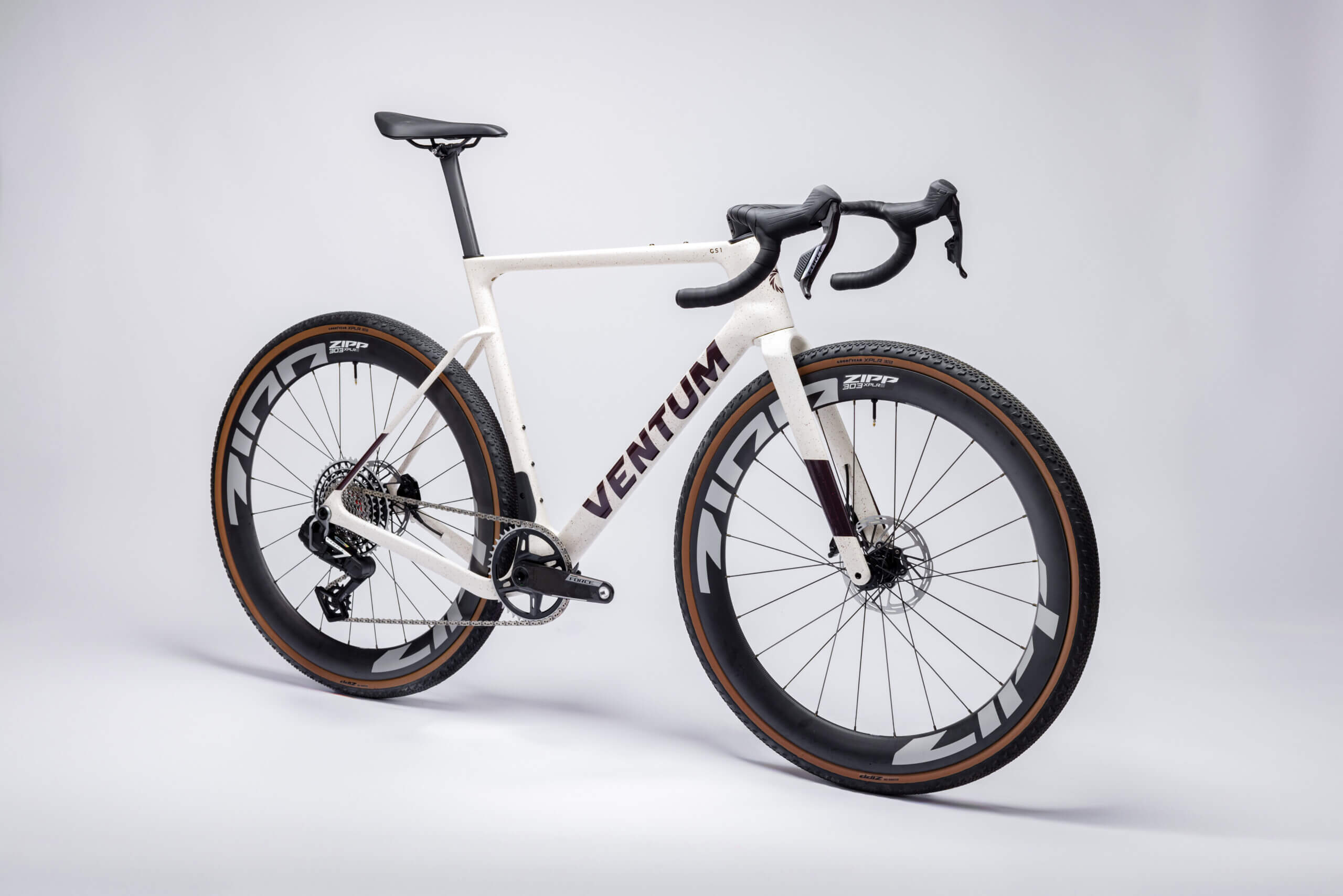 Diese Version des GS1 Gravelbikes ist mit der High-End-Schaltung SRAM Force XPLR 13-Gang und ZIPP 303 XPLR S Laufrädern ausgestattet. Komplettiert durch das einteilige Ventum CR5 Gravel-Cockpit ist es eine rennfertige Maschine.